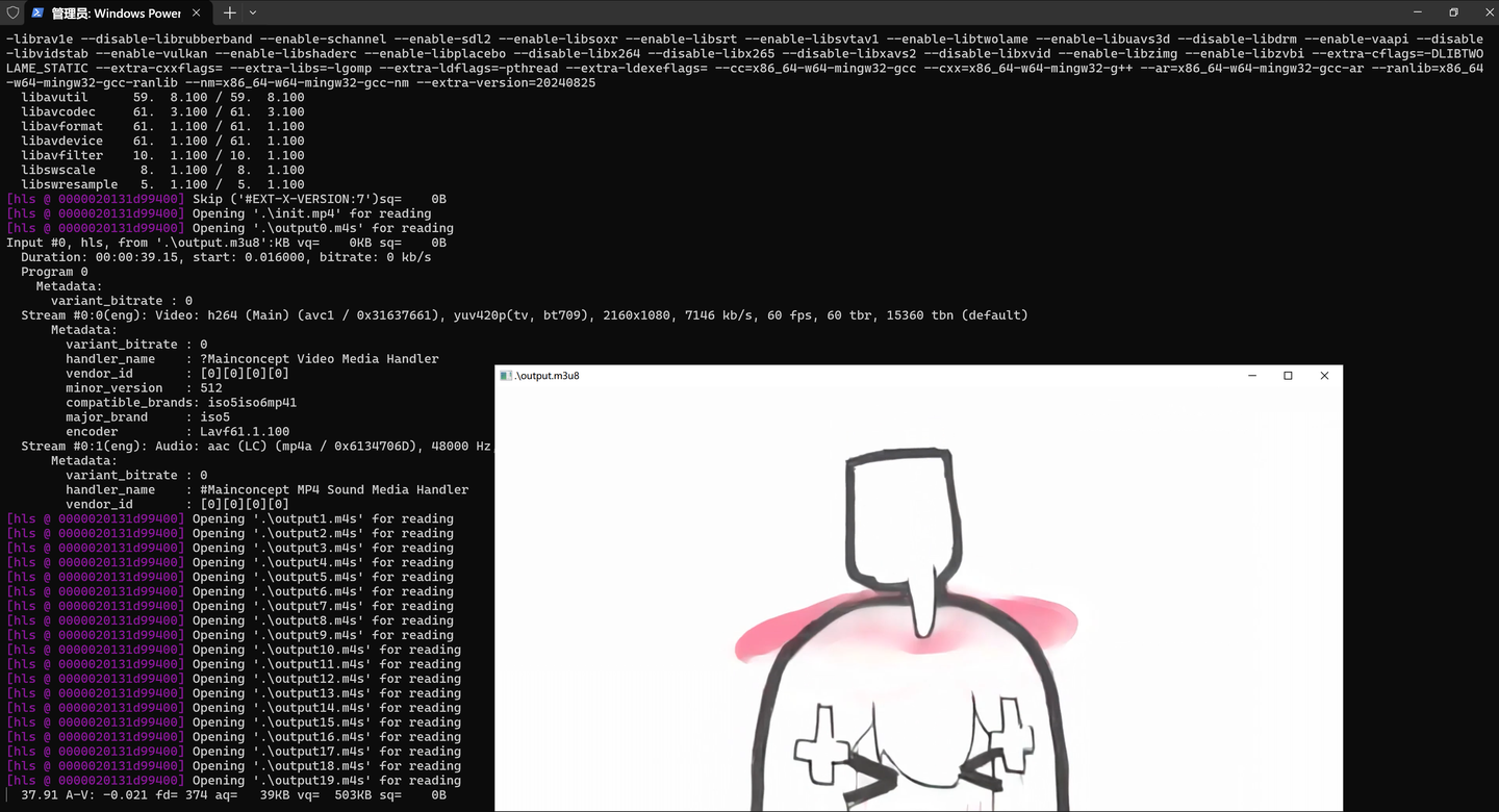 - 调用 FFmpeg 工具将原始视频文件转为分段的 M4S 片段文件,同时生成相应的 m3u8 播放列表: