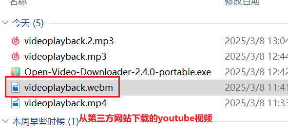 Youtube 为例,WebM 文件中只有视频内容,没有音频内容。