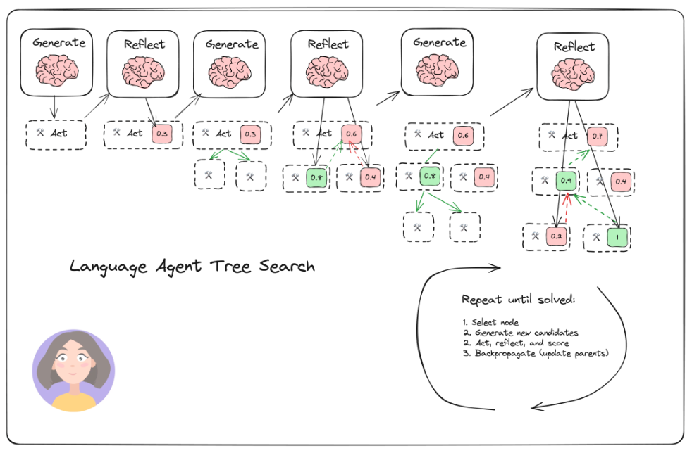 - 反思(Reflection): LLM 检查自己的工作,以提出改进方法。