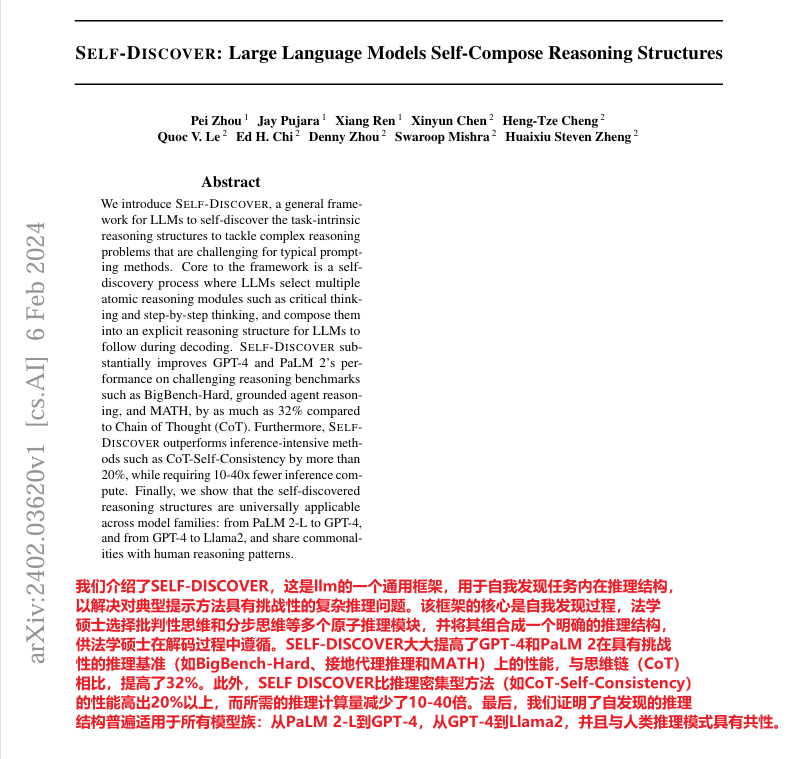 - SELF-DISCOVER: Large Language Models Self-Compose Reasoning Structure/大语言模型自我发现的推理结构 - arxiv.org