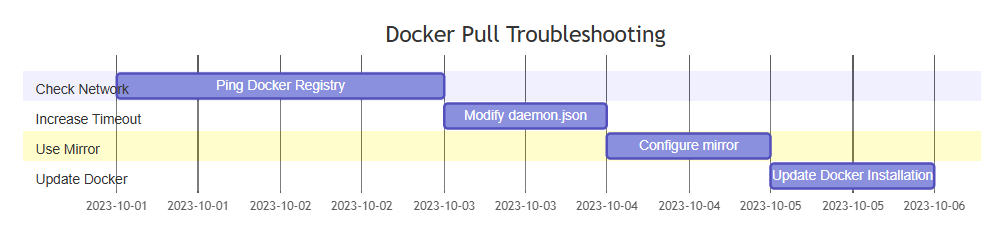 - Docker配置问题:不当的Docker配置可能导致超时。