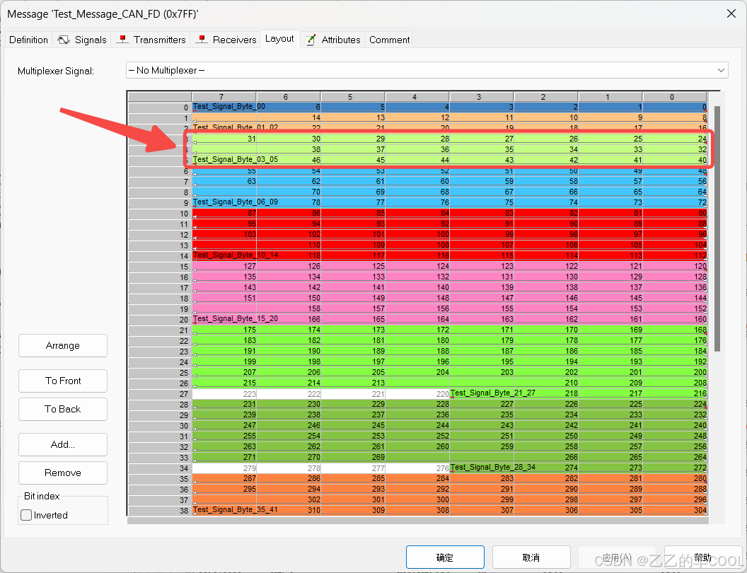 DBC文件能够看到0x7FF报文包含很多信号,当Engine节点想要把信号Test_Signal_Byte_03_05发送给Gateway节点时,对于DBC来说报文的长度是固定下来的,要发送Test_Signal_Byte_03_05信号就必须把0x7FF这一整帧包含的所有信号全部发出去。 - 但对于