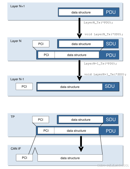 AUTOSAR网络模型架构来看,PDU可以分为I-PDU、N-PDU和L-PDU。