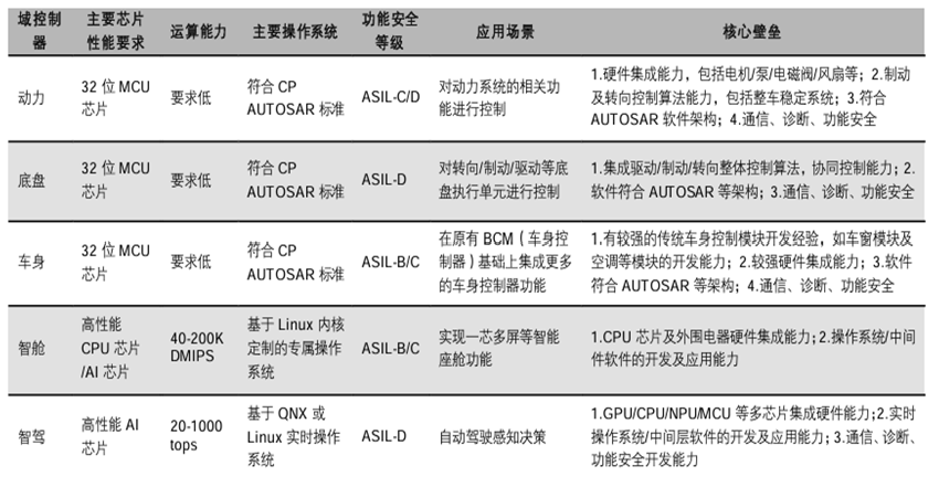 车身域 | 电子系统管理、功能协同 | 区域控制器、智能负载控制 | AUTOSAR架构、PEPS无钥匙系统 | 特斯拉中央控制模块、吉利星越L |
