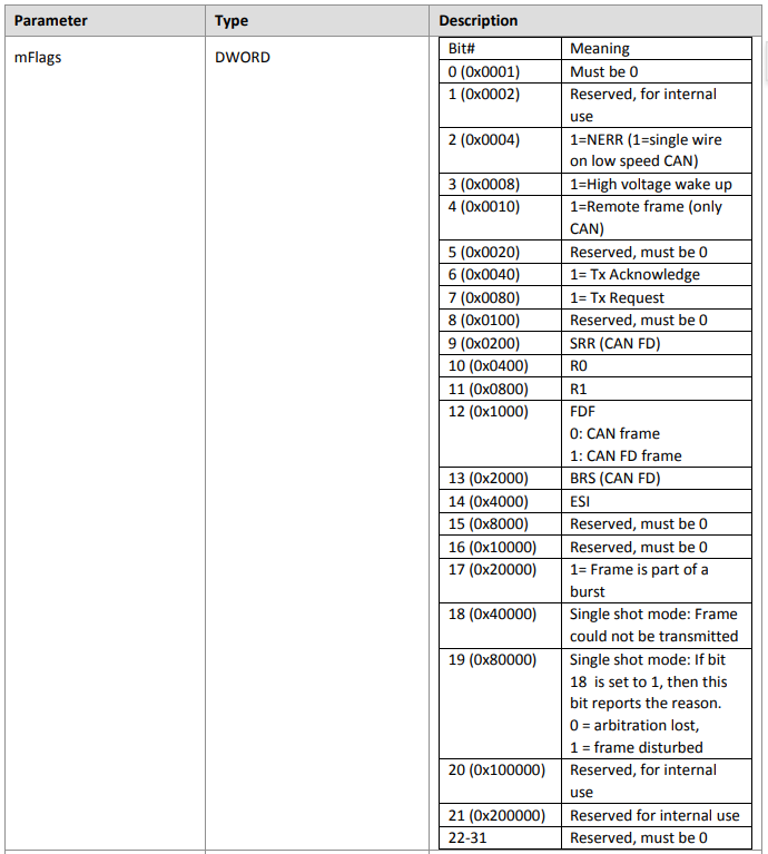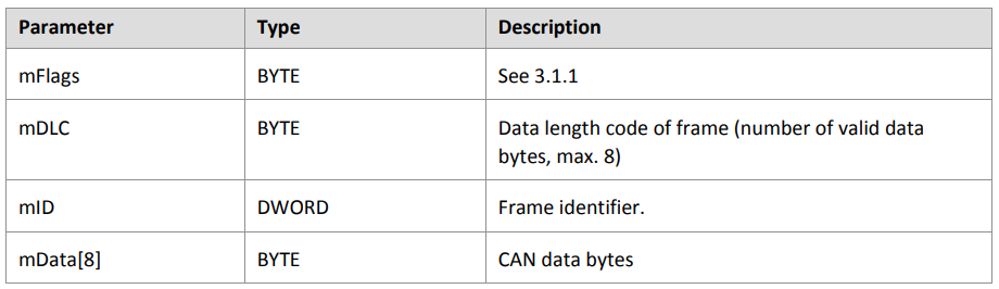 - Description: CAN data or CAN remote frame received or transmitted on a CAN channel.