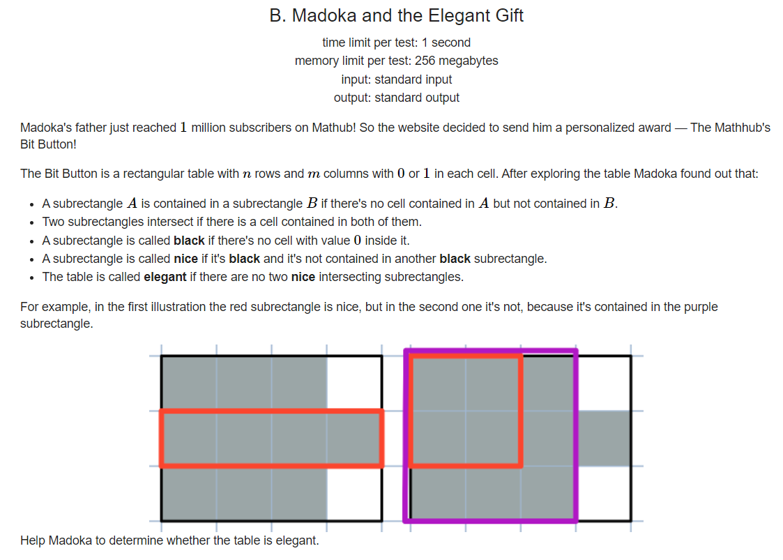 简要翻译:给予一个01矩阵,其中1代表涂色部分。判断这个网格内是否不含两个相交的极大矩形。