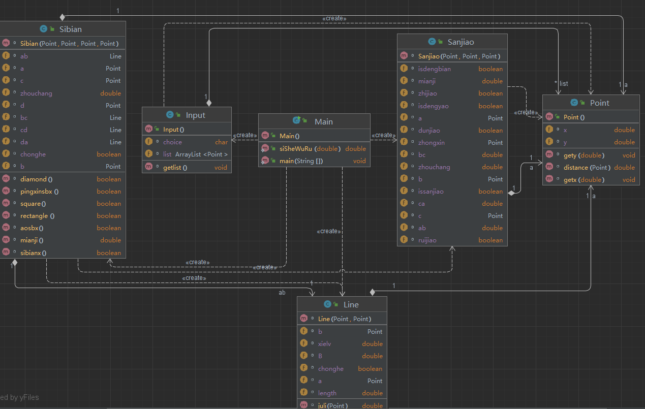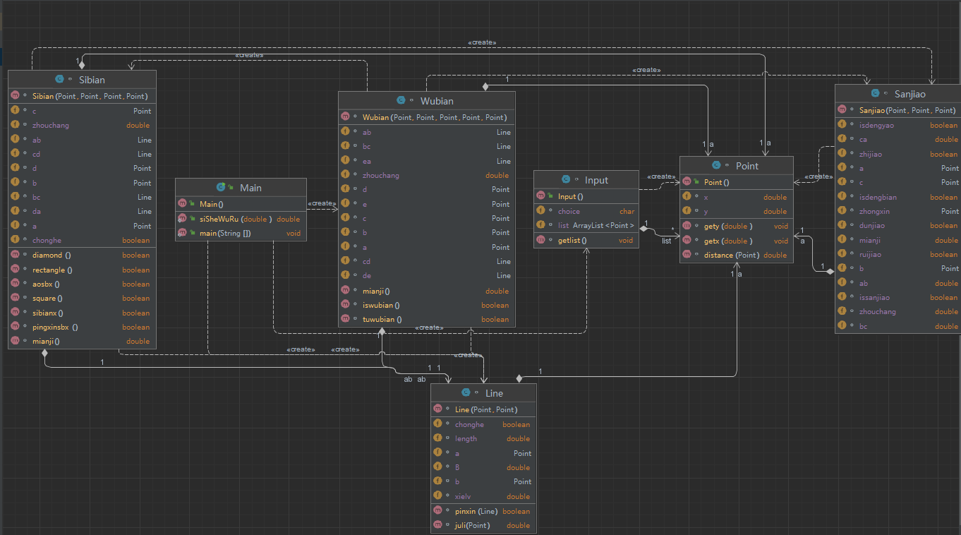 设计主函数,点类,线类,三角形类,四边形类,用输入类简化main![]()