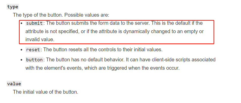 这句代码的时候就在找submit事件在那里触发,后来发现button如果不设置type的话,默认就是submit。可以参考MDN上的知识