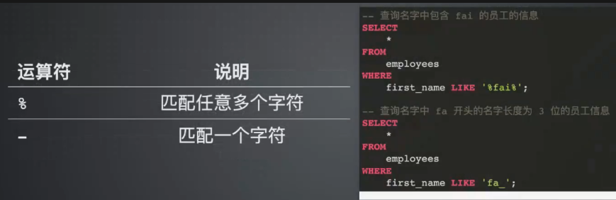 -- 查询名字中fa开头的,名字长度为3位的员工信息
