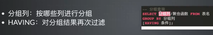 group by子句:搜集数据行到各个组中,统计函数为各个组计算统计值