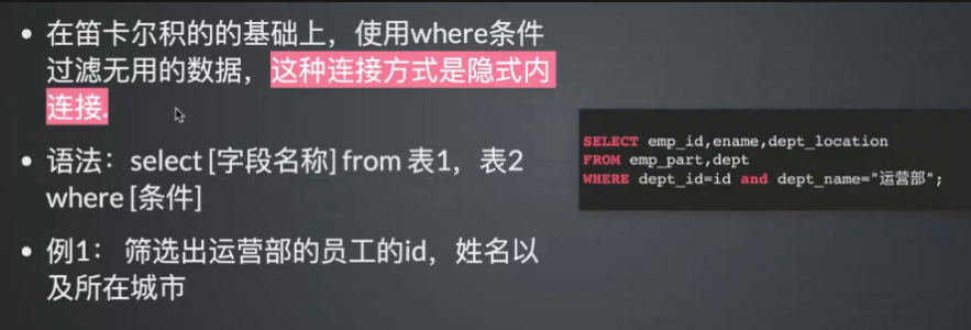 区分:没有明显出现内连接关键字 inner join 就是隐示内连接