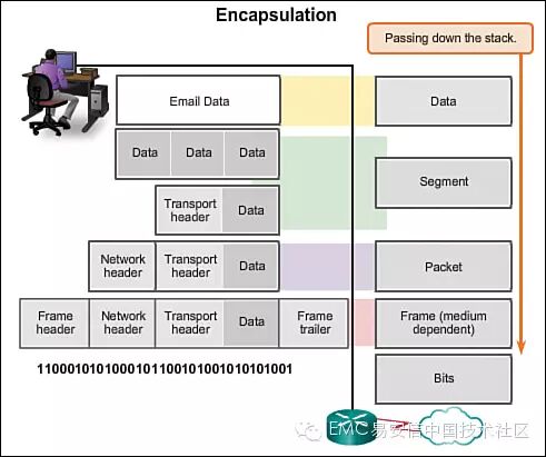 接收主机以相反的方式进行操作称为解封装。解封装是接收设备移除一层或多层协议头的过程。数据在协议栈中向上移动直到终端应用层伴随着解封装。