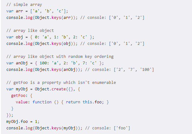 Object.keys 返回一个所有元素为字符串的数组,其元素来自于从给定的object上面可直接枚举的属性。这些属性的顺序与手动遍历该对象属性时的一致。