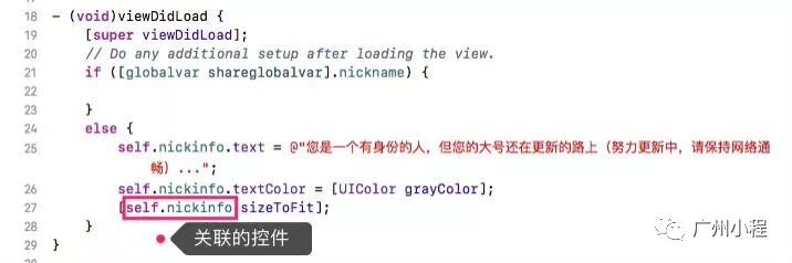 一般情况下,我们需要关联这个label,并在代码中灵活地设置text的内容。跟先定义一个vc类一样,先在代码中定义一个UILabel,并加上IBOutlet关键字,比如: