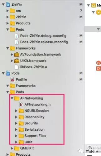 安装完毕,在目标项目内可以看到afnetworking的身影,比如: