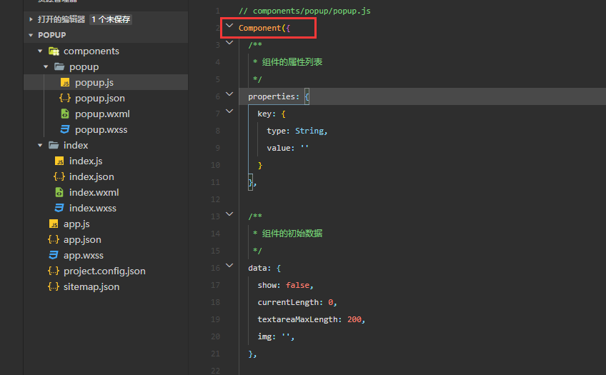 如果创建成功,打开js文件,它与普通的page是有区别的