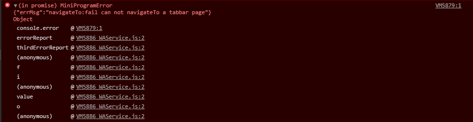 我们习惯用wx.navigateTo做跳转链接,但是如果要跳转到tabbar页面,会报以下错误: