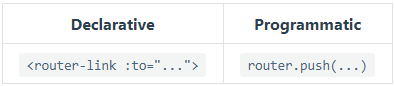 前者是html中的标签,后者在js部分书写(note:常用写法this.$router.push(xxx))。这里简单介绍下前者,后者在下面详细介绍。