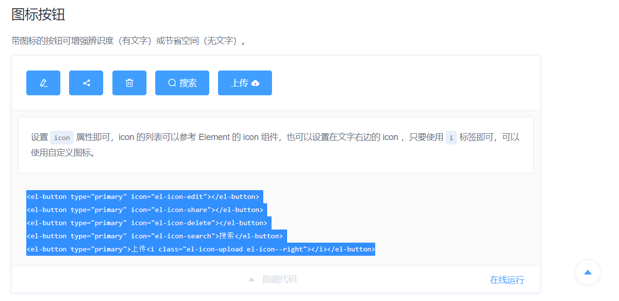 以引用element-ui提供的图标按钮组件作为例子,走一遍自己在使用element-ui的流程。