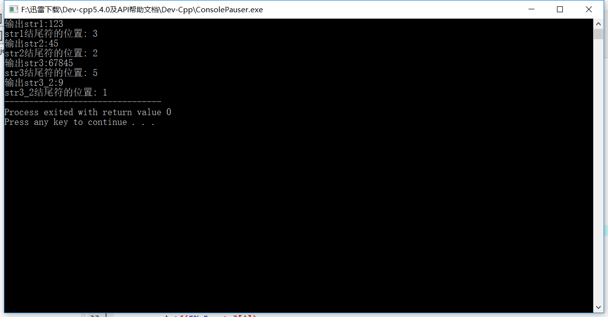 printf("\nstr1结尾符的位置: %d", i);