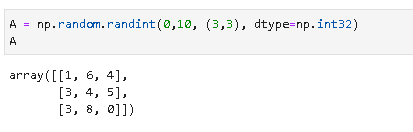 例子:生成由0~10范围内的随机数构成的3*3矩阵,指定类型int32