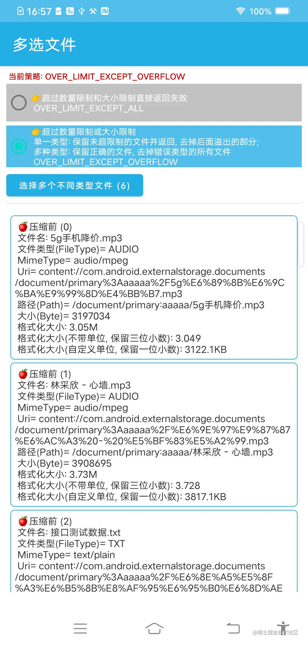 Android 系统问题 : Intent.putExtra(Intent.EXTRA_ALLOW_MULTIPLE, true) 开启多选条件下只选择一个文件时,系统是按照单选逻辑走的... Σ( ° △ °|||)︴