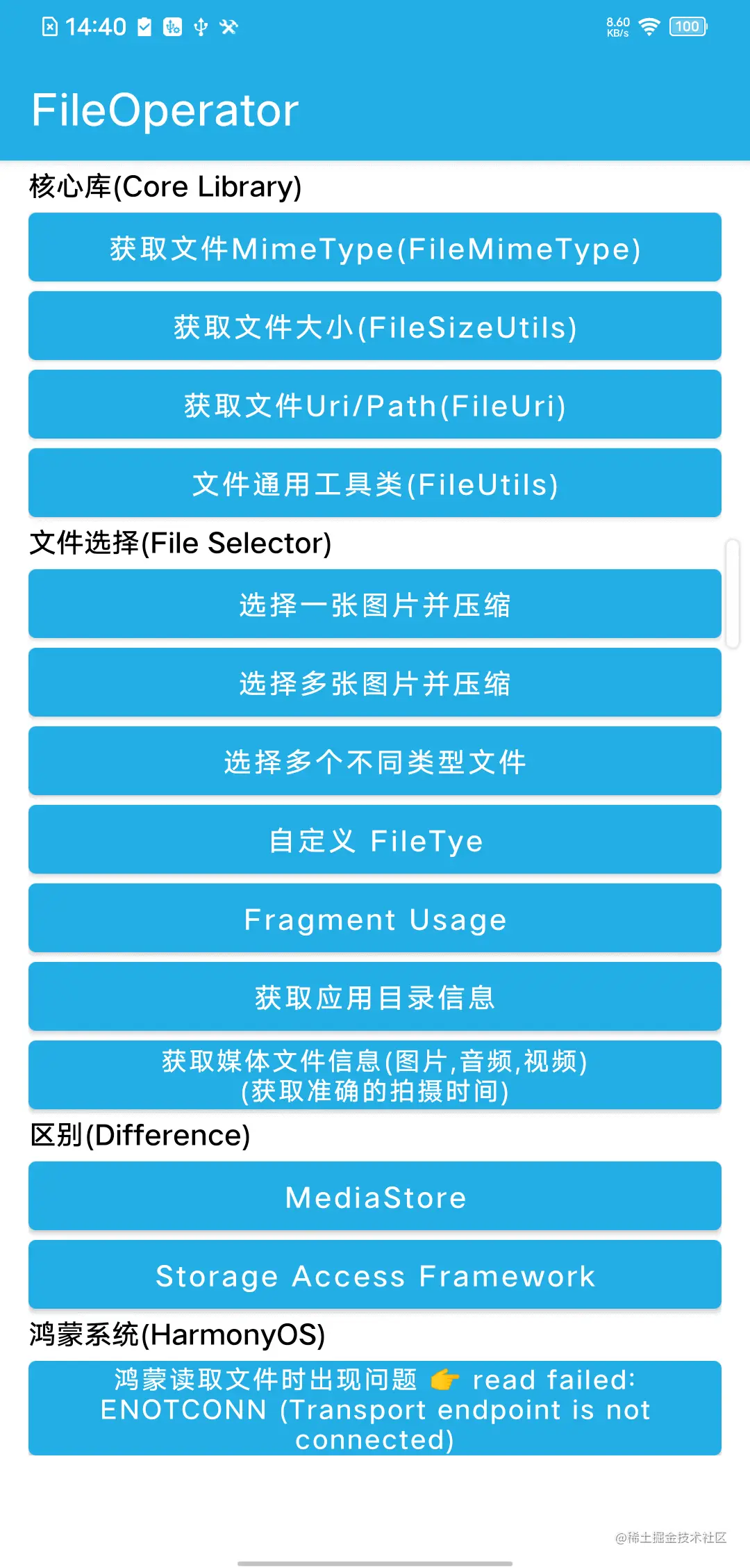 Android文件操作库。适用于Android 4.4及以上系统, 已兼容AndroidQ和Android11新的存储策略。包括处理Android端文件目录及缓存、文件MimeType、文件打开方式、文件路径和Uri、文件大小、文件常用工具类以及文件选择处理等功能。