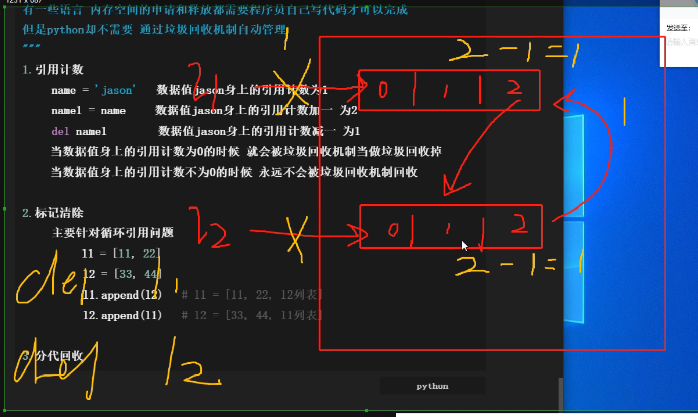l2.append(l1) # l2 = [33, 44, l1列表] 引用计数为2