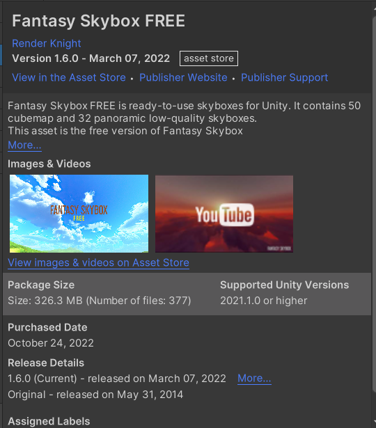 Asset Store上下载一个天空盒资源并在Package Manager导入