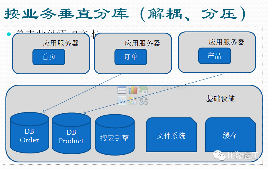 应用都拆了,由于单个数据库的连接,QPS,TPS,I/O处理能力都非常有限,DB层面也可以去做垂直分库操作