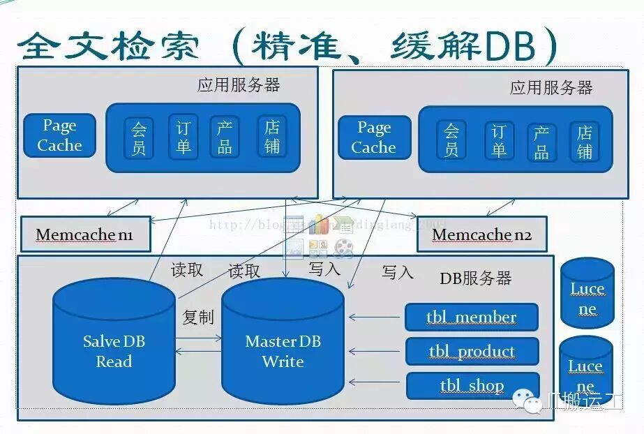 到这里,已经基本做到了DB层面和应用层面的横向扩展了,可以开始关注一些其它方面,例如:站内搜索的精准度,对DB的依赖,开始引入全文索引。