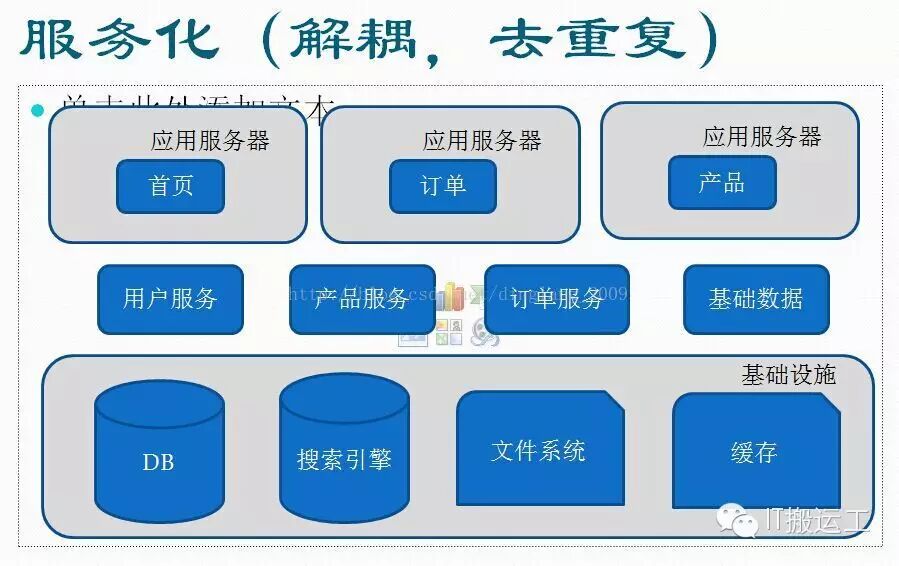 拆分应用和DB之后,其实还是会有很多问题。不同的站点,里面可能会有相同逻辑和功能的代码。当然,对于一些基础的功能我们可以封装DLL或者Jar包去到处提供引用,但是这种强依赖也很容易造成一些问题(版本问题、依赖关系等处理起来非常麻烦)。这样,传说中的SOA的价值就得到体现了。