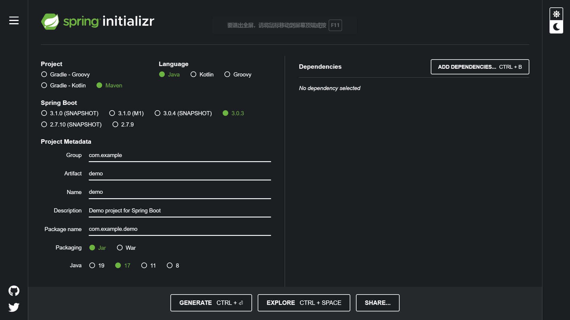 4)Release:正式版,也可以用没有任何后缀表示 - Project Metadata:项目的初始化设置