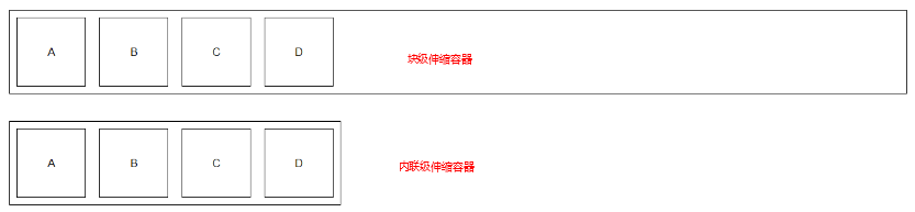 块级伸缩容器与内联级伸缩容器类似,默认都是从左往右排列,唯一不同的是块级伸缩容器独占一行,而内联级伸缩容器随着内容改变。