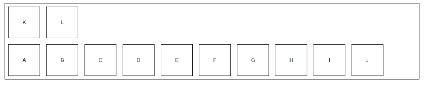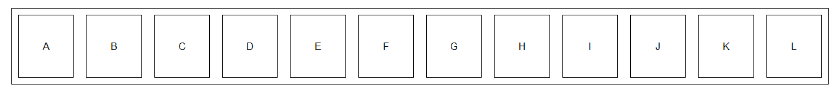 1 <!DOCTYPE html> 2 <html lang="en" xmlns="http://www.w3.org/1999/xhtml"> 3 <head> 4 <meta charset="utf-8" /> 5 <title></title> 6 <style> 7 *{ 8 margin:0; 9 padding:0; 10 } 11 .box{ 12 display:-moz-box; 13 display:-webkit-box; 14 display:-ms-flexbox; 15 display:-webkit-flexbox; 16 display:flex; 17 border:1px solid; 18 margin:20px; 19 -moz-box-lines:multiple; 20 /*定义伸缩换行属性为nowrap(默认值)*/ 21 flex-wrap:nowrap; 22 } 23 .box div{ 24 width:100px; 25 height:100px; 26 line-height:100px; 27 border:1px solid; 28 text-align:center; 29 margin:10px; 30 } 31 32 </style> 33 </head> 34 <body> 35 <div class="box"> 36 <div>A</div> 37 <div>B</div> 38 <div>C</div> 39 <div>D</div> 40 <div>E</div> 41 <div>F</div> 42 <div>G</div> 43 <div>H</div> 44 <div>I</div> 45 <div>J</div> 46 <div>K</div> 47 <div>L</div> 48 </div> 49 </body> 50 </html>