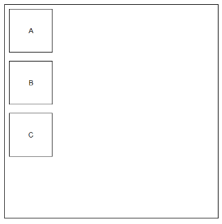 1 <!DOCTYPE html> 2 <html lang="en" xmlns="http://www.w3.org/1999/xhtml"> 3 <head> 4 <meta charset="utf-8" /> 5 <title></title> 6 <style> 7 *{ 8 margin:0; 9 padding:0; 10 } 11 .box{ 12 width:500px; 13 height:500px; 14 border:1px solid; 15 margin:20px; 16 display:flex; 17 justify-content:flex-start; 18 } 19 body>div:first-child{ 20 flex-flow:row nowrap; 21 } 22 body>div:last-child{ 23 flex-flow:column nowrap; 24 } 25 .box div{ 26 width:100px; 27 height:100px; 28 line-height:100px; 29 border:1px solid; 30 text-align:center; 31 margin:10px; 32 } 33 34 </style> 35 </head> 36 <body> 37 <div class="box"> 38 <div>A</div> 39 <div>B</div> 40 <div>C</div> 41 </div> 42 <div class="box"> 43 <div>A</div> 44 <div>B</div> 45 <div>C</div> 46 </div> 47 </body> 48 </html>