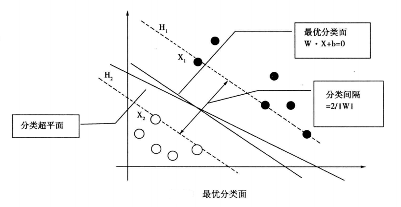 支持向量机(Support Vector Machine,SVM)通过在特征空间中构造最优分类超平面来实现分类。最优分类超平面是指两类的分类空隙最大,即每类距离超平面最近的样本到超平面的距离之和最大。距离这个最优超平面最近的样本被称为支持向量(Support Vector)。