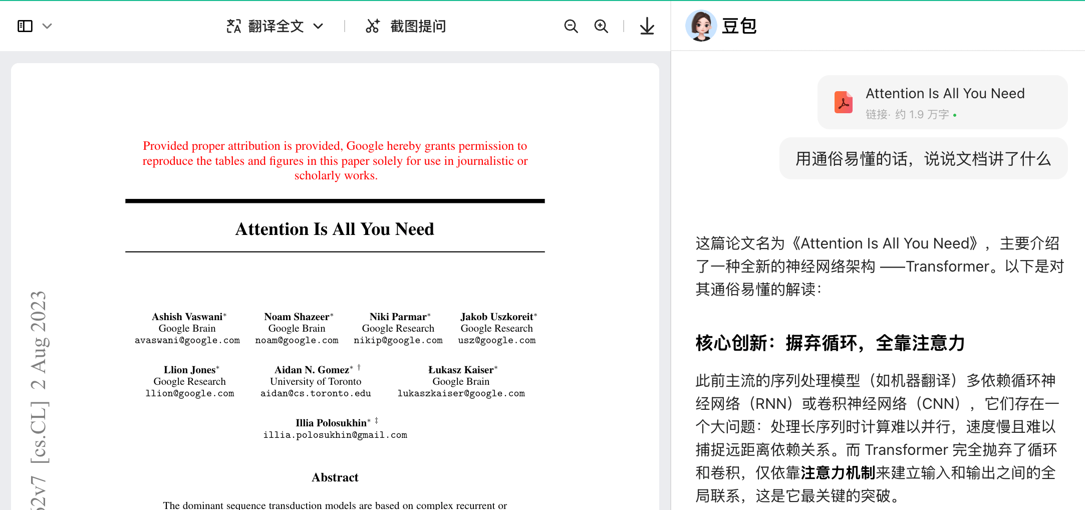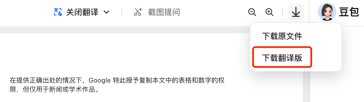 - 网页端总结翻译论文的豆包