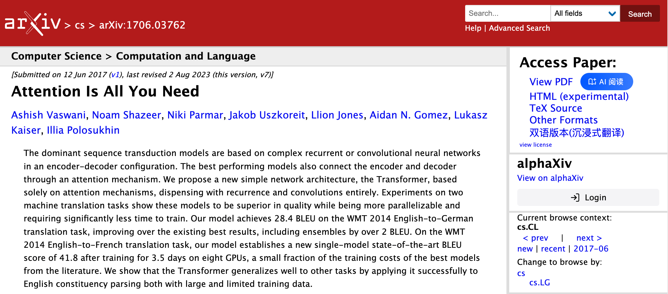 比如《Attention is all you need》:https://arxiv.org/pdf/1706.03762