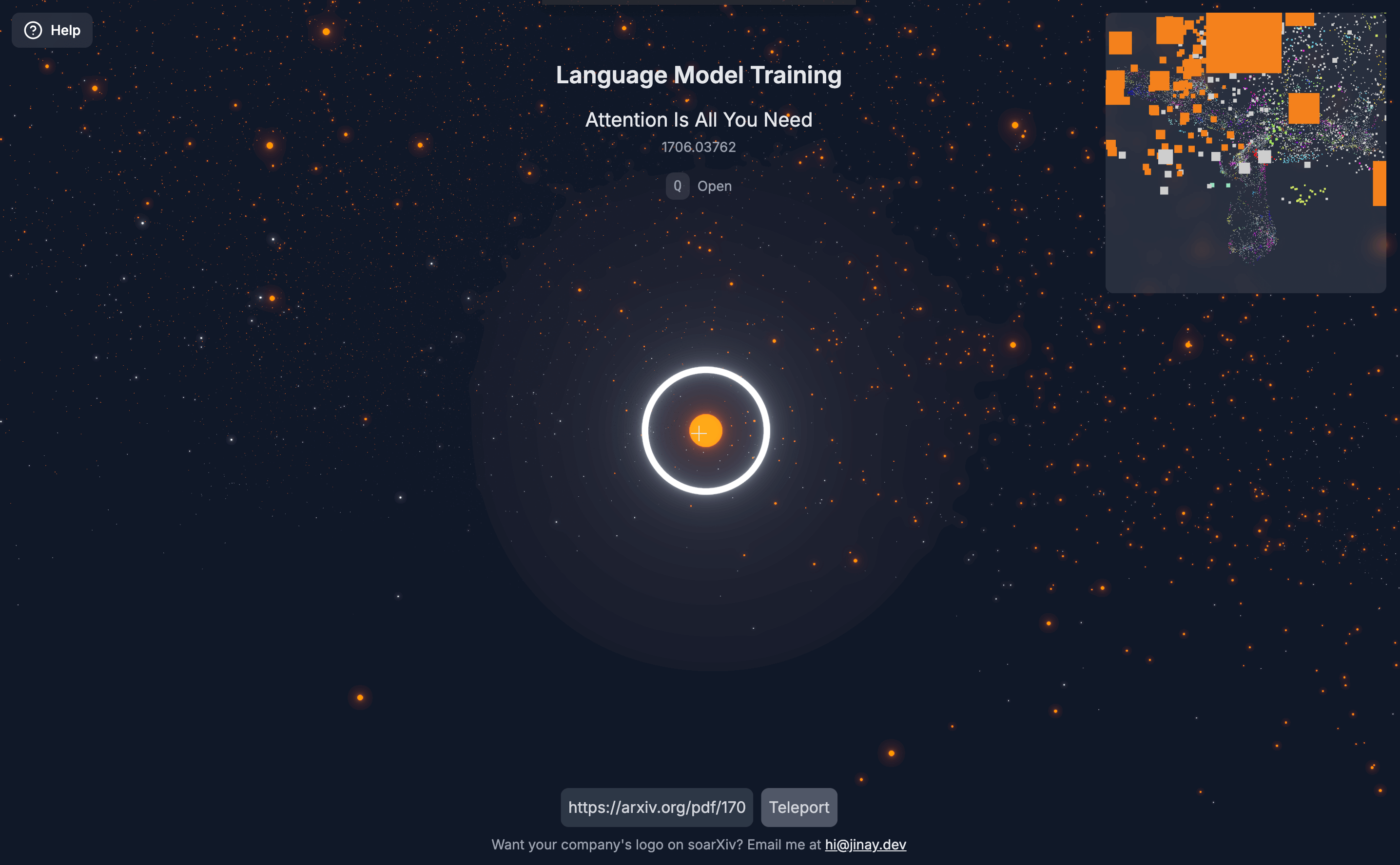 这个网站收录了 280 万篇 arxiv 论文,把每一篇论文变成了星空中的一颗星,点击即可直达