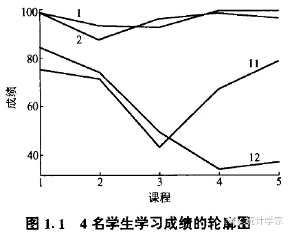 (4)对于n次观测值,每次都重复上述步骤,可画出n条折线,构成n次观测值的轮廓图.