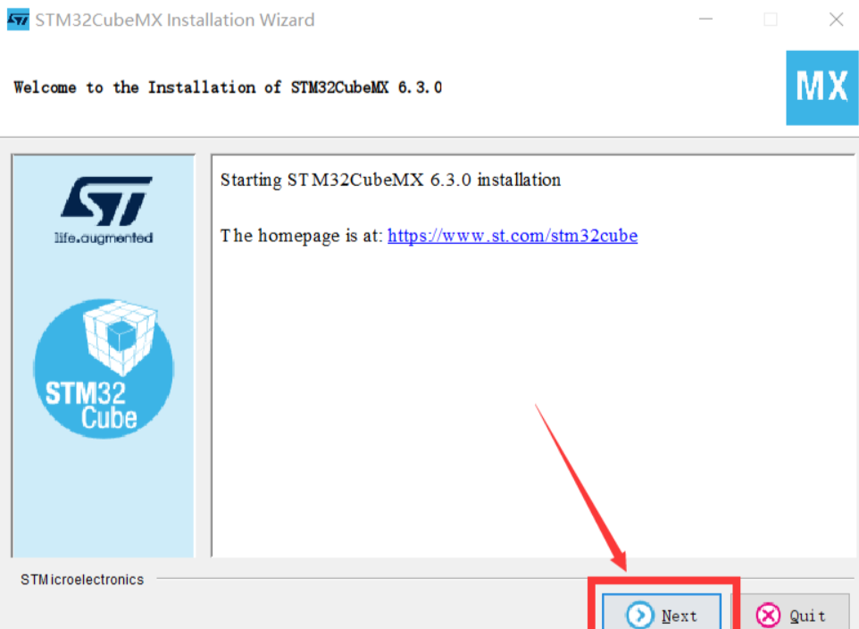 1.以管理员身份运行并安装 SetupSTM32CubeMX-4.27.0.exe ,进入下面这个界面后,点击Next