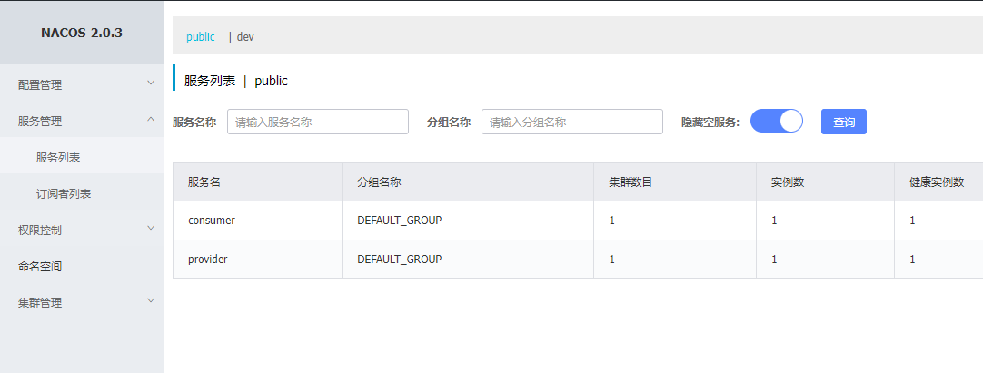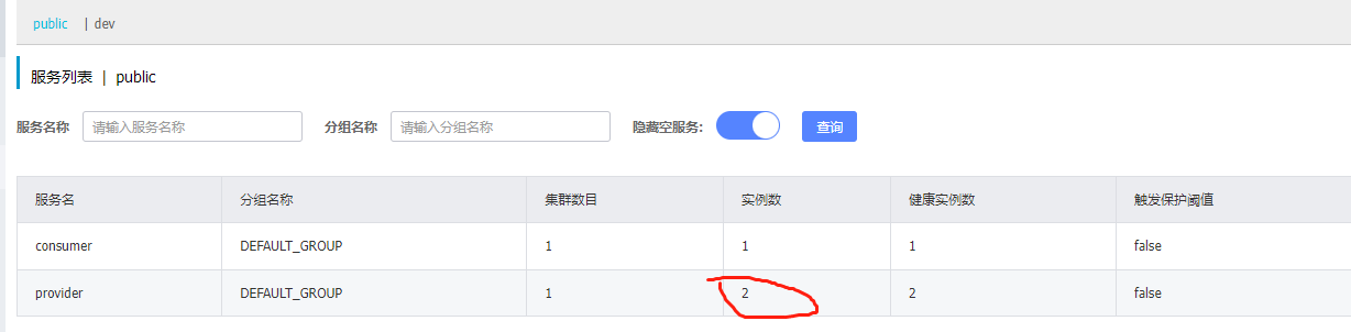 - 先启动nacos,再启动服务提供者和消费者,在nacos界面服务列表中可以看到