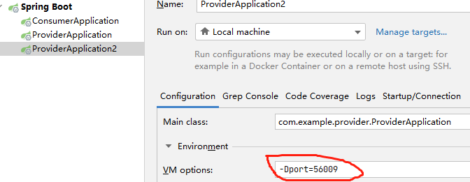 复制一个providerApplication,修该vm options参数如下,然后启动
