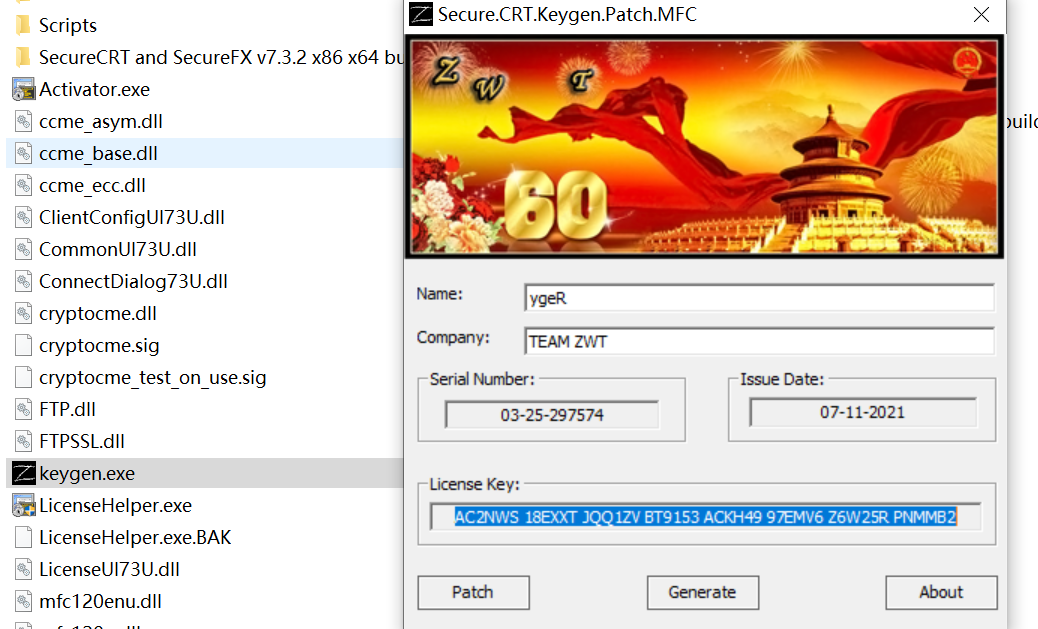 (1) 将注册机里面的两个exe软件,分别复制粘贴到CRT的安装目录下面,如下