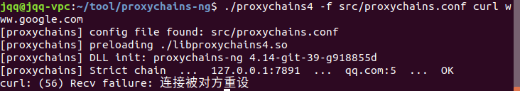 jqq@jqq-vpc:~/tool/proxychains-ng$ ./proxychains4 -f src/proxychains.conf curl www.google.com