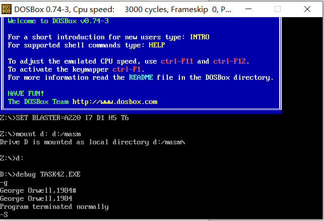 assume cs:code code segment start: int 42 mov ah, 4ch int 21h code ends end start