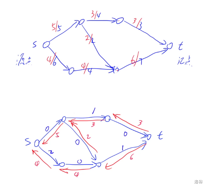 像这两个流网络,下面的就是上面的残留网络。