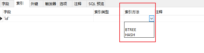 可以看到MySQL存在两种索引机制,Hash和BTREE