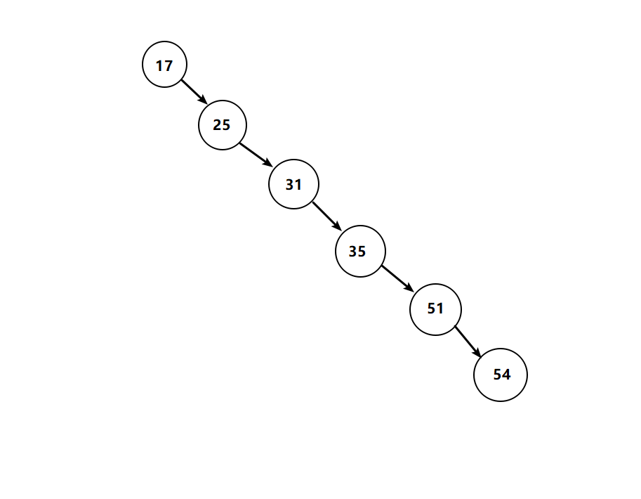 这个时候针对ID的二叉树结构将变为线性链表结构,如果我们再去查找的话就相当于全表扫描,效率很低。究其原因就是因为二叉树的高度太高了,导致查找效率不稳定。